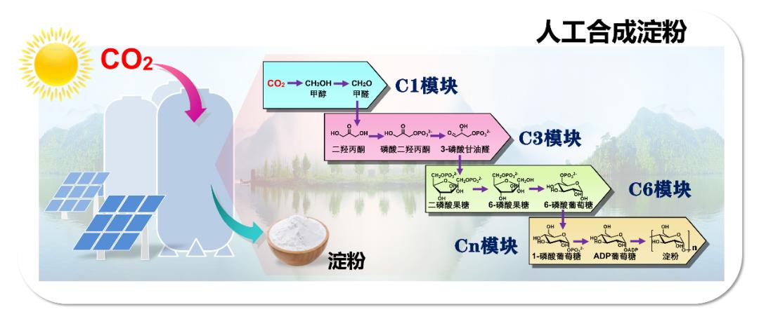 淀粉是粮食最主要的成分,也是重要的工业原料。中国科学院天津工业生物技术研究所联合大连化物所等单位,抽提自然光合作用的化学本质,从头设计创建了从二氧化碳到淀粉合成的非自然途径,解决了途径代谢流从头计算、关键酶元件设计组装、生化途径精确调控等科学问题,以生物催化与化学催化耦合的11步反应,颠覆了自然光合作用固定二氧化碳合成淀粉的复杂生化过程,在国际上首次实现了二氧化碳到淀粉的人工全合成,能效和速率超越玉米等农作物,突破了自然光合作用局限,为淀粉的车间制造打开了一扇窗,并为二氧化碳原料合成复杂分子提供了新思路。在国际上引起强烈反响,被认为是一项里程牌式突破,将在下一代生物制造和农业生产中带来变革性影响。