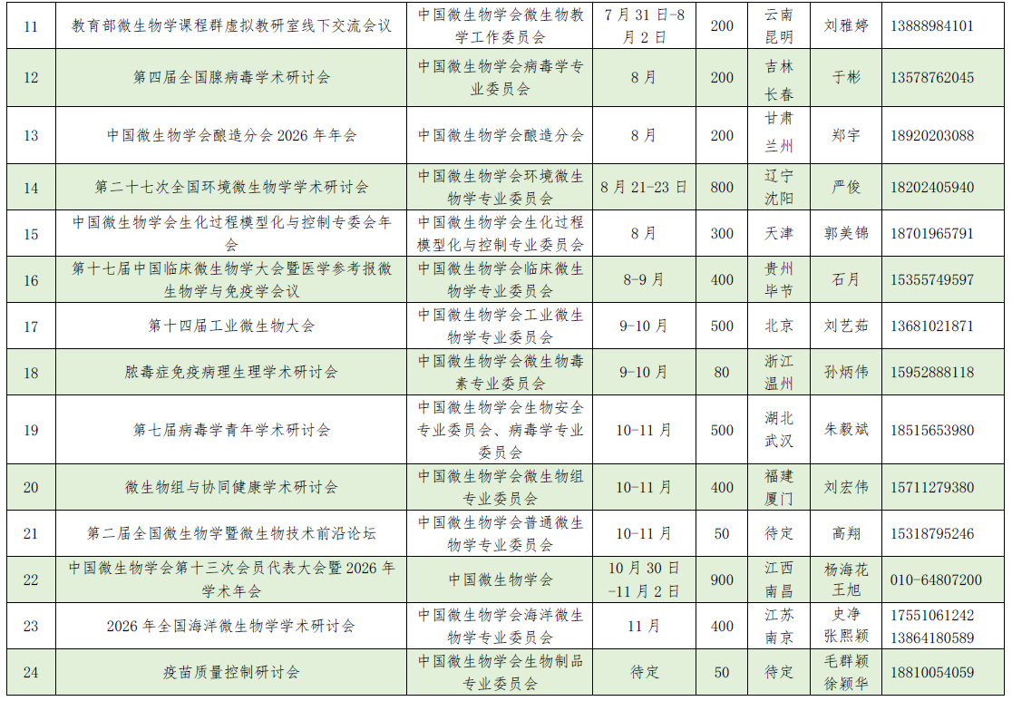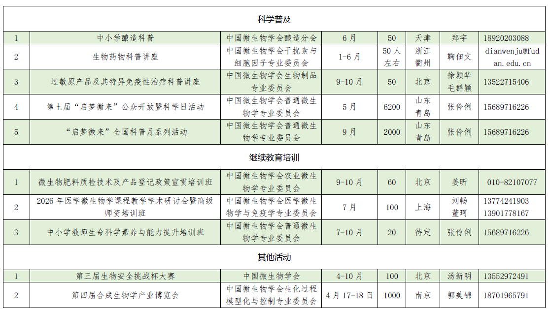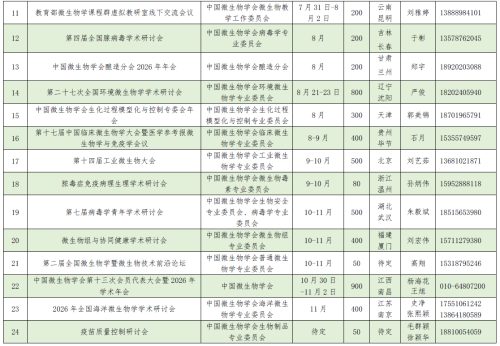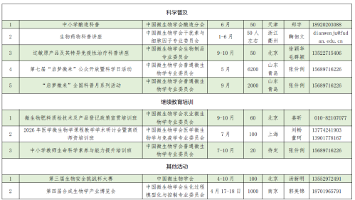 2026年中国微生物学会及各专业委员会活动计划表